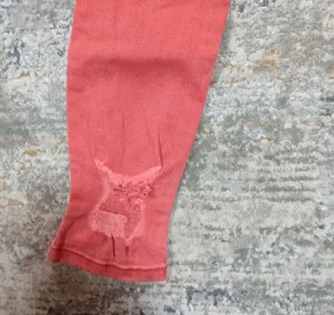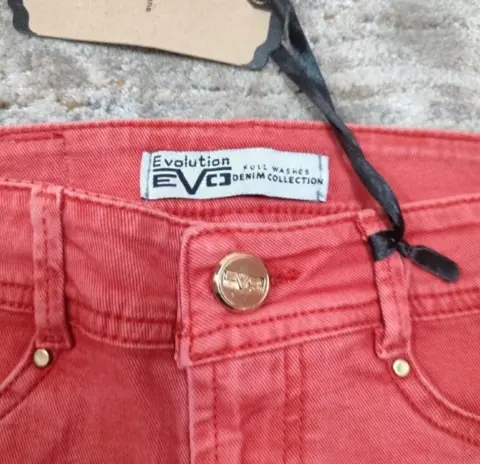 Pantalón de mezclilla, color rojo, nuevo, está marcado como talla 5 pero queda como 3.