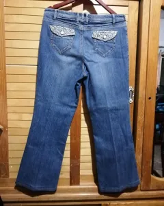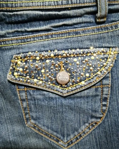 Pantalon de mezclilla en perfecto estado con aplicaciones de doradas en las bolsas de atrás y en frente así tal cual se muestra en las fotos
