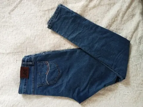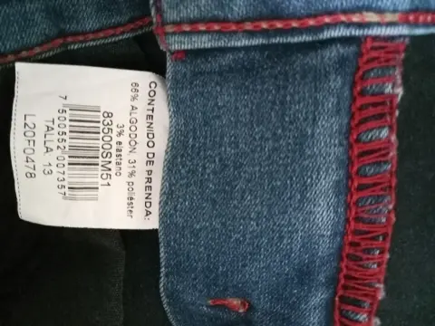 Pantalón de mezclilla stretch, dice talla 13, viene reducido a una talla 9. Entubado, bolsas enfrente y en la parte de atrás.