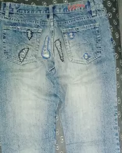 Pantalón de mezclilla para dama, marca Cochni (italiana), talla XS, mezclilla rígida, bordada, acampanado. Se ajusta perfecto a tu cintura y se ve excelente la caída de la pierna. Aprovecha la oferta!!! $$$$💰
