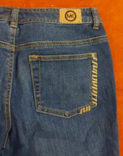 Pantalón de mezclilla recto MK. Mezclilla azul medio, talla 6 cintura 36 cm, cadera 47 cm, largo 94 cm, a estrenar sin etiqueta