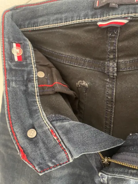 Pantalón de mezclilla Tommy Hilfigher Talla 12 de niño, color azul marino, tiene resorte por dentro para ajustar la cintura, sin detalles, se usó tres ocasiones.