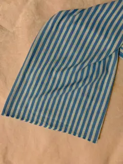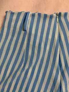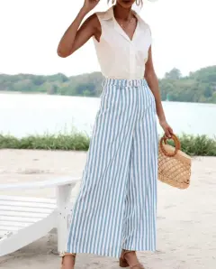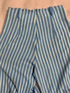 Pantalón de pierna ancha. Pantalón de pierna ancha azul bebé con rayas blancas, tiene un cinturón de telita igual que el pantalón es largo como se ve en la foto 1! Es de tiro alto y queda como las ultimas fotos cintura: 69-74 cm largo: 110 cm talla S pero queda a M
