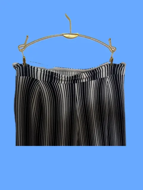 Pantalón de rayas negras con blancas. Pantalón de vestir formal amplio de la parte cintura y pompas ajustable la parte del terminado es estubado