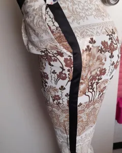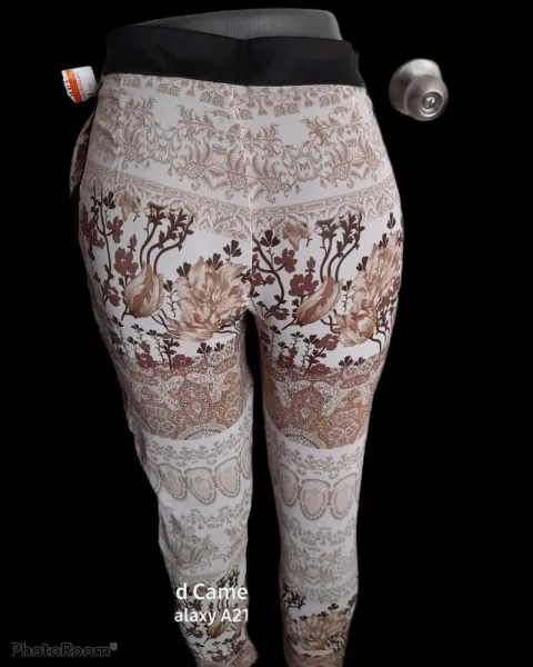 Pantalon de tela fresca, la tela es un poco transparente, talla S, el único detalle que tiene es que se rasgo un poco se ve en la última foto, nuevo con etiqueta!