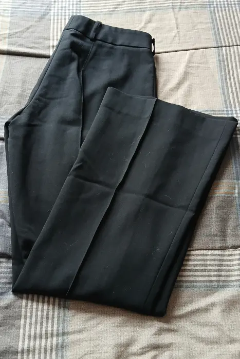 Pantalón negro, tipo sastre, tiene una ligera mancha en la parte de abajo se muestra en la fotografía.