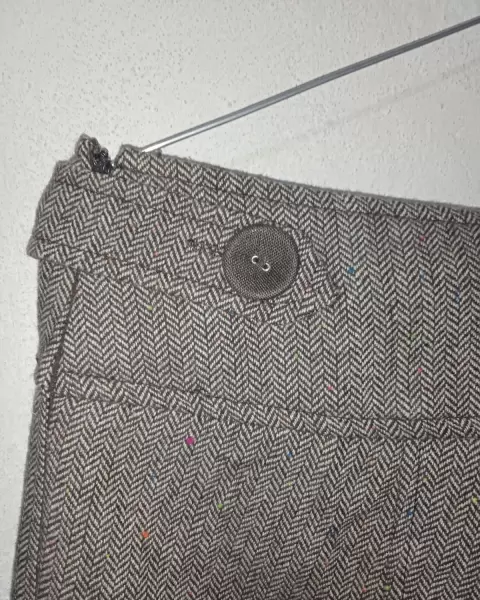 Pantalón de vestir color café es acampanado,es de lana con forro interior, tiene cierre lateral y está en buen estado es nuevo