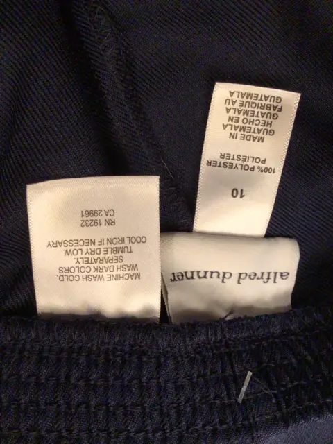 PANTALÓN DE VESTIR. PANTALÓN AZUL MARINO CON RESORTE Y BOLSAS LATERALES, TALLA 10, TELA POLIÉSTER, MARCA ALFRED DUNNER, MEDIDAS CINTURA 40, CADERA 52, LARGO 98, CON ETIQUETA