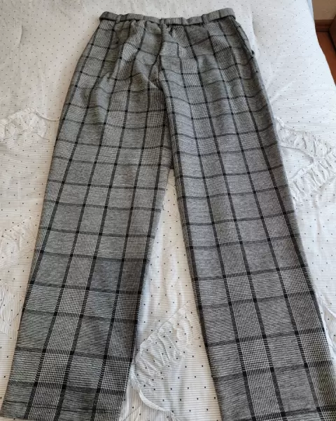 Pantalón de vestir a cuadros gris con negro NUEVO sin etiquetaEn perfectas condicionesCon bolsas delanteras, zipper, cinturón y resorteTALLA S/M