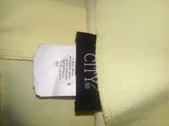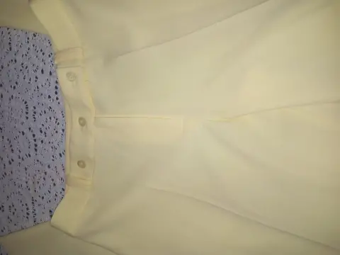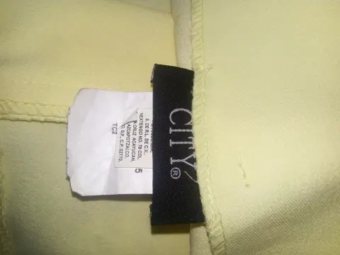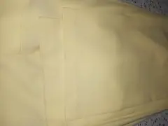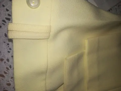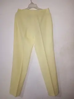Pantalón de vestir en color amarillo claro con pretina cinturón de 3 botones y cierre. Medidas: cintura 76 cm, cadera 100 cm y largo 102 cm. Tela y costura en buen estado.