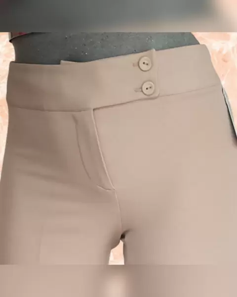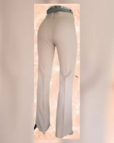 Pantalón de vestir estilo elefante de cintura alta, color BEIGE, cierre p/cremallera baja y botonadura triple. Dan una figura extraordinaria por el corte y la composición de la tela. Talla 30 (REDUCIDA, da mejor a 28). Dimensiones: 37.5 cms cintura, 26.5 cms tiro, 45 cms cadera, 26.5 cms pierna, 104.5 cms largo. 94% poliéster, 6% elastano. Para lavado en casa.