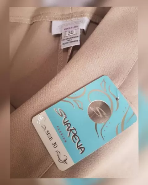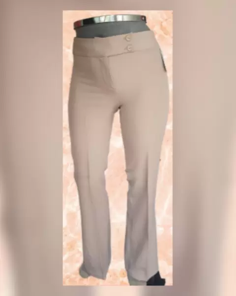 Pantalón de Vestir BEIGE. Pantalón de vestir estilo elefante de cintura alta, color BEIGE, cierre p/cremallera baja y botonadura triple. Dan una figura extraordinaria por el corte y la composición de la tela. Talla 30 (REDUCIDA, da mejor a 28). Dimensiones: 37.5 cms cintura, 26.5 cms tiro, 45 cms cadera, 26.5 cms pierna, 104.5 cms largo. 94% poliéster, 6% elastano. Para lavado en casa.