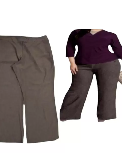 Pantalón de vestir café. ◾Talla 22◾ Stretch ◾ Tiro medio ◾Pierna amplia ◾bolsillos funcionales delante y detrás.◾Buen estado no desgaste. 👉tiene un área pequeña del cierre con brillo◾120 cm cintura ◾146 cm cadera, estura más ◾102 cm largo.🧿Tip, midete la cadera y cintura sentada.