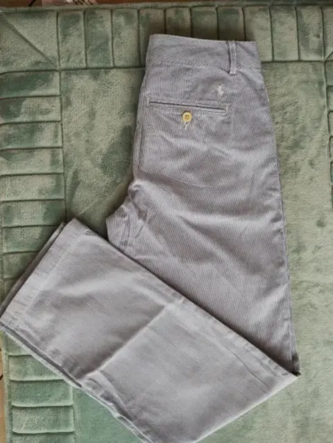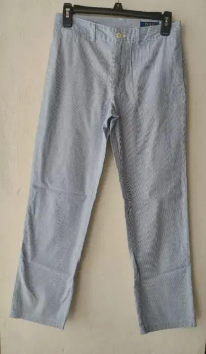 Pantalón azul claro rayas tenues blancasViene marcado en Talla 14 pero queda bien a talla S de caballeroMarca Ralph LaurenCasualEn perfecto estado sin algún detalleColor 💯Mide 35 cm de cintura44 cm cadera23 cm tiro92 cm largo18 cm ancho piernaEs corte recto