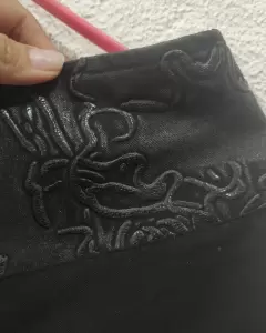 Pantalón de vestir como n aplicación de piel. Es talla 13 mas o menos, tiene aplicaciones de piel en piernas, cintura y la parte de atrás, en perfectas condiciones muy poquito uso.