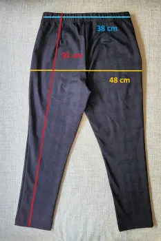 Medidas planas: cintura 38 cm / cadera 48 cm / largo 91 cmComposición: 57% poliester, 38% viscosa, 5% elastanoElasticidad media
