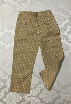 Pantalón de tela gruesa con strech, corte skinny, estampado de puntos blancos, aberturas en la parte inferior de la pierna, cierre oculto en la cadera.Medidas/ cintura: 37 cm, cadera: 46 cm, tiro: 28 cm, largo: 85 cm