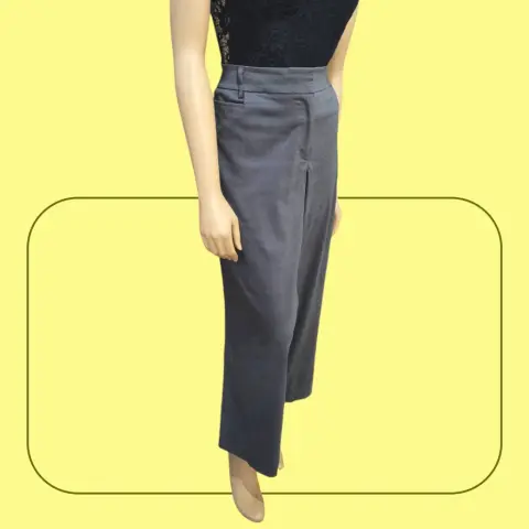 Pantalon de Vestir LaneBryant, talla Extra Grande 18-petite, color gris solido, cintura elástica, pretillas para cinturon, 2. Bolsillos delanteros, estilo recto, cierre y 2 ganchillos de cierre, tela elastica, hecho de poliéster, rayón y nylon, mide 48cm de cintura, 58 cm de cadera,71cm de entrepierna con 71cm de largo de la cintura hacia abajo en buen estado cosmetico.