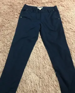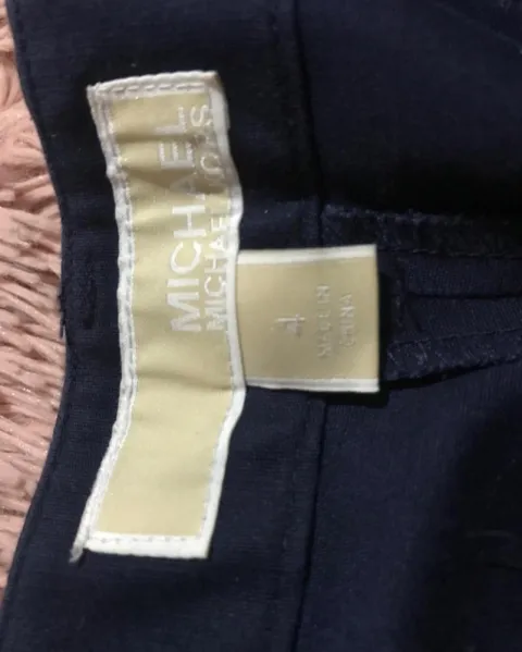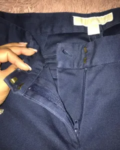 Pantalón de vestir Michael Kors. Pantalón Michael Michael Kors de corte recto, azul marino,detalles alusivos a la marca en botones y placa trasera, bragueta de cierre y cuatro bolsillos