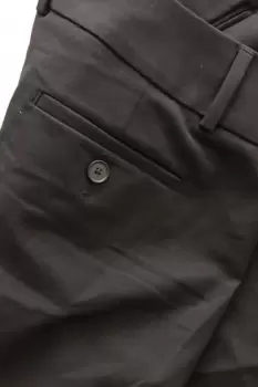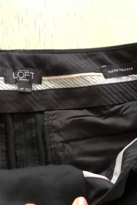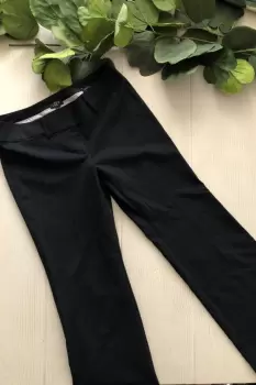 Pantalon negro de vestir, corte recto y amplio sin ser acampanado, viene con dos mini bolsillos enfrente y bolsillos con boton detras, trabillas para cinturon, boton y cierre. Dice talla cuatro, pero parece 6-7Medidascintura: 84 cmcadera: 96 cmlargo: 102 cm