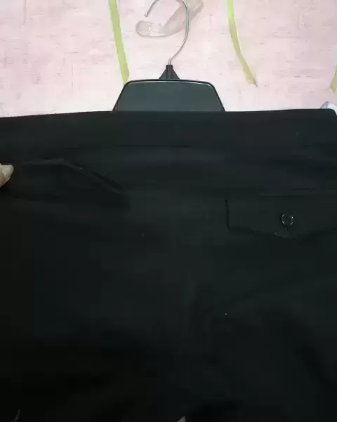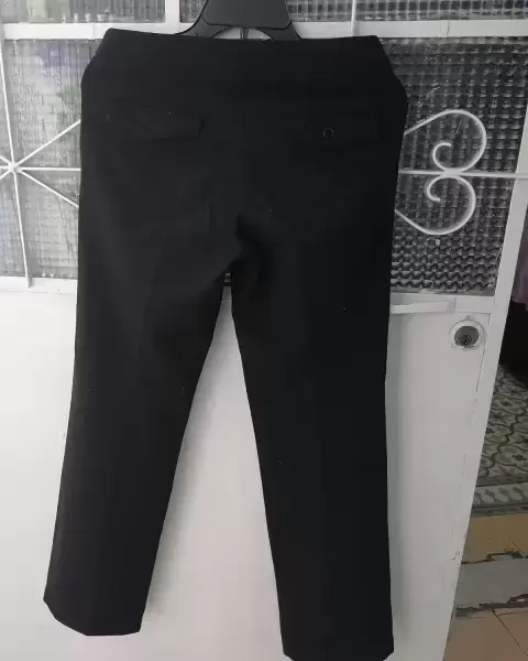 Pantalon de vestirColor: NegroTalla: ChTrae bolsas en la parte de adelante y en la parte de atrasMedidas: * Cintura 37 cm* Largo 97 cmDetalle: La bolsa de atras del lado izquierdo se le cayo el boton como se ve en la 4ta foto.Cupón: JanMoPBn0H