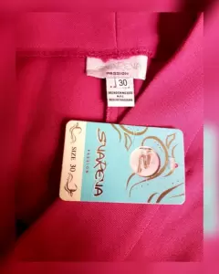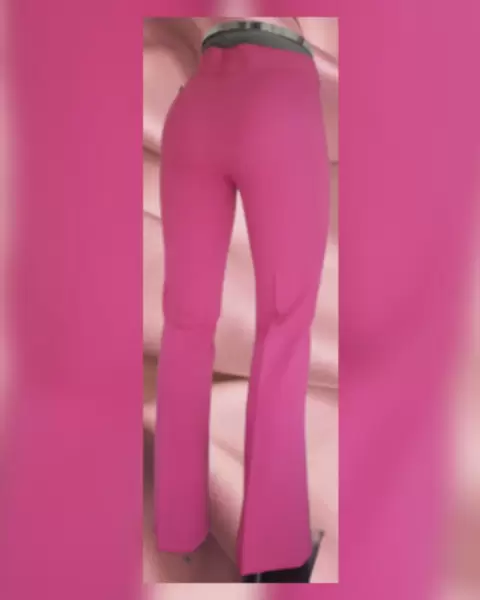 Pantalón de vestir estilo elefante de cintura alta, color ROSA CHICLE, cierre p/cremallera baja y botonadura triple. Dan una figura extraordinaria por el corte y la composición de la tela. Talla 30 (REDUCIDA, da mejor a 28). Dimensiones: 37.5 cms cintura, 26.5 cms tiro, 45 cms cadera, 26.5 cms pierna, 104.5 cms largo. 94% poliéster, 6% elastano. Para lavado en casa.