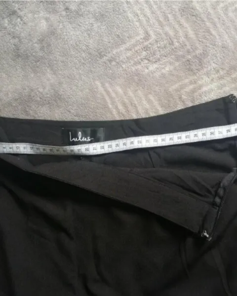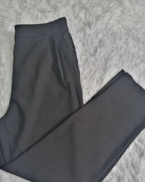 Bonito pantalón negro con pinzas muy marcadas en la parte de frente, tiro alto talla xl pero le voy más a una L , almoda muy bonito al cuerpo ,es tobillero ,perfectas condiciones sin ningun detalle.