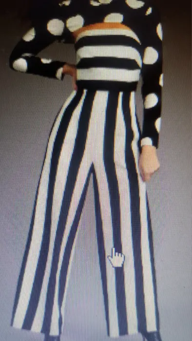 Pantalón entero a rayas blanco con negro cierre en la parte se atrás torera negra lunares blancos cierre atrás cuello alto se entrega en paquete original