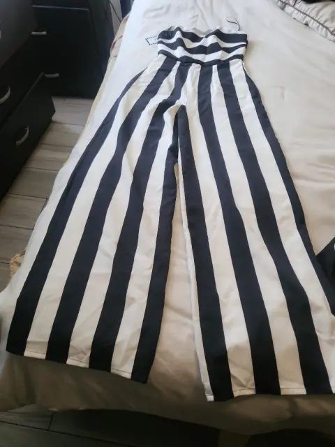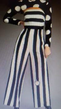 Pantalón entero con totera. Pantalón entero a rayas blanco con negro cierre en la parte se atrás torera negra lunares blancos cierre atrás cuello alto se entrega en paquete original