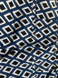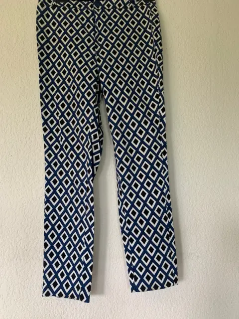 Pantalón, entubado, dibujo de rombos negro, blanco, azul, talla S , tela delgada