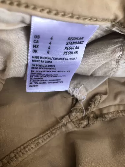 Pantalón entubado, talla 4, súper stretch, color caqui, en perfectas condiciones.