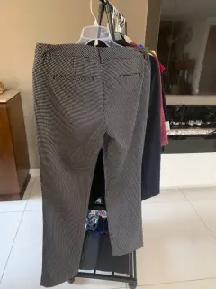 Pantalón de vestir Express , talla 10, negro con pequeños cuadritos negros, puesto una sola vez, sin ningún detalle , medidas cintura baja 45, cadera 53, tiro 23, largo 101