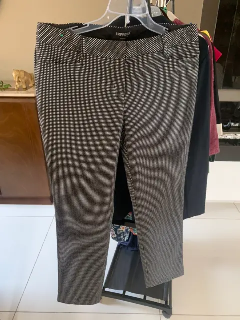 Pantalón express talla 10. Pantalón de vestir Express , talla 10, negro con pequeños cuadritos negros, puesto una sola vez, sin ningún detalle , medidas cintura baja 45, cadera 53, tiro 23, largo 101