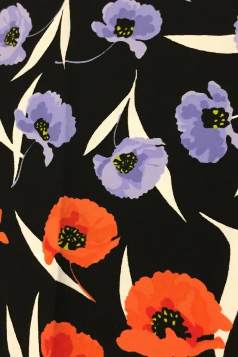 Pantalón de pierna ancha, con estampado floral en azul y naranja, tiene bolsas frontales y falsas bolsas traseras, zipper lado izquierdo.PoliésterMedidas: Cintura 35cm, Cadera 46 cm, Largo 94 cm