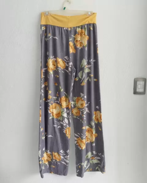 Pantalón floral pierna ancha. Divino! Súper cómodo, ligero. Tiene su cordon o jareta color gris. Mucho strech, pierna ancha, luce tal cual las fotos. Usalo para salir o rutinas de Yoga. Nuevo sin etiqueta. Queda tambien perfecto para M.