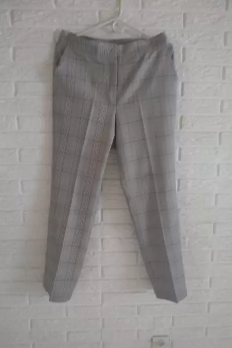 Pantalón formal Novo Stilo, multicolor cuadros en azul claro, negro, blanco y café claro, da una tonalidad en gris claro, talla 7, recto, con bolsas al frente, 55% polyester, 45% lana, buenas condiciones,poco uso, sin detalles, se entrega tal y como se ve en las fotos, el precio en tienda es de $ 550.00 lo vendo en $ 300.00