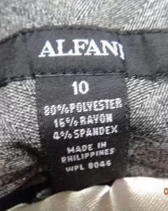 Pantalón Alfani, gris oxford, talla 10, corte recto, sin bolsas a los costados, en la parte de atrás tiene dos bolsas pequeñasMedidas:Ancho cintura: 40 cmsAncho cadera: 49 cmsLargo tiro a bastilla: 81 cms