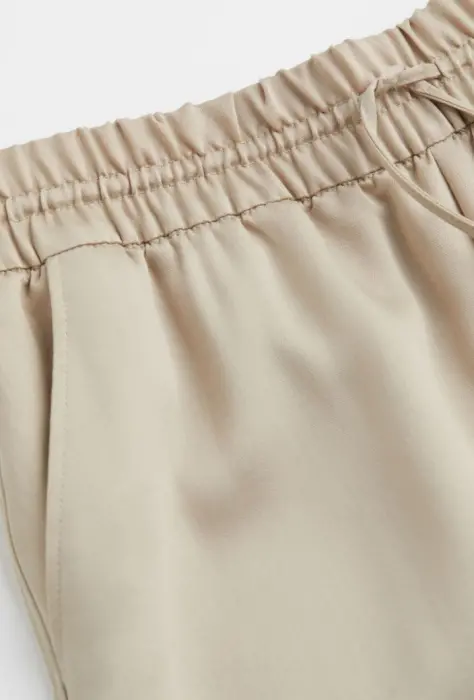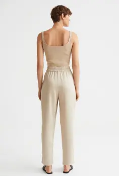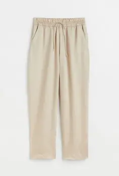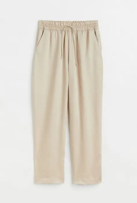 Descripción:Pantalón H&M mezcla lyocell, al tobillo, talle alto con cordón de ajuste y forrado a la cintura, bolsillos laterales y piernas ligeramente ajustadas, tela brillante