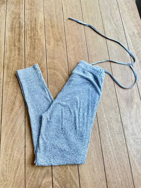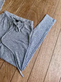 Pantalon jogger gris con textura en canalé, tiene resorte en la cintura y cordón para ajustar al tamaño. Talla xs.