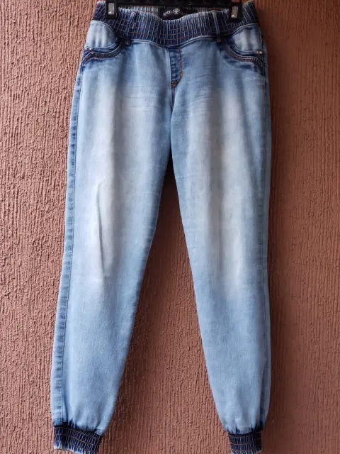 Pantalón Jogger Seven-Eleven. Bonito pantalón de mezclilla tipo Jogger, color azul claro con deslavados, bolsas traseras, la de delanteras son simuladas, de resorte en cintura, cintura media, la mezclilla es delgada. *Talla 9-32*Detalles: El desgaste normal por las lavadas*Calificación:9*NO OFERTAR NI BLOQUEAR PRENDAS SI NO ESTÁS SEGURA DE LA COMPRA*GRACIAS POR TU PREFERENCIA*