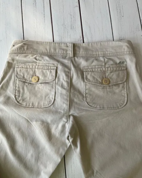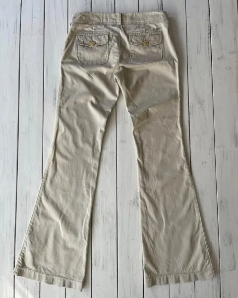 Pantalón khaki Abercrombie. Talla: 0 RegularMedidas: 37 cm de cintura, 18 cm de tiro, 44.5 cm de cadera y 84.5 cm de entrepierna.Tela suave y ajuste a la cadera, stretch, bootcut.