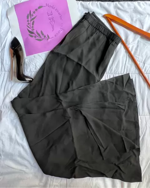 Pantalón negro sin detalles con abertura a los lados achampanado