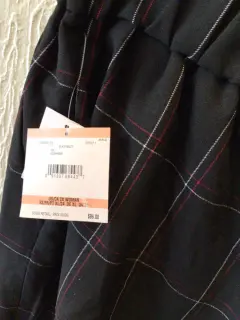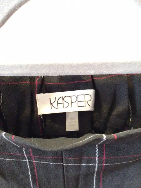 PANTALÓN MARCA KASPER, CON BOLSAS, RESORTE EN LA PARTE DE ATRAZ, TALLA DOS X, A CUADROS COLOR AZUL MARINO CON BLANCO Y ROJO NUEVO CON ETIQUETA ORIGINAL