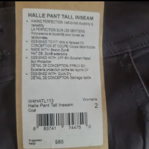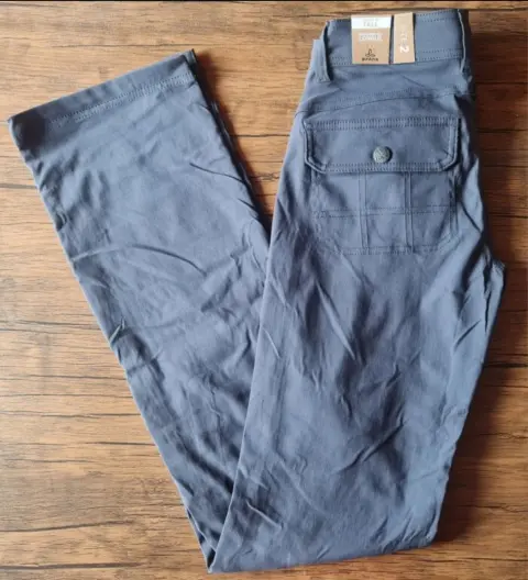 Pantalón marca Prana, talla 2, completamente nuevo, con etiqueta, color gris, sin defectos.