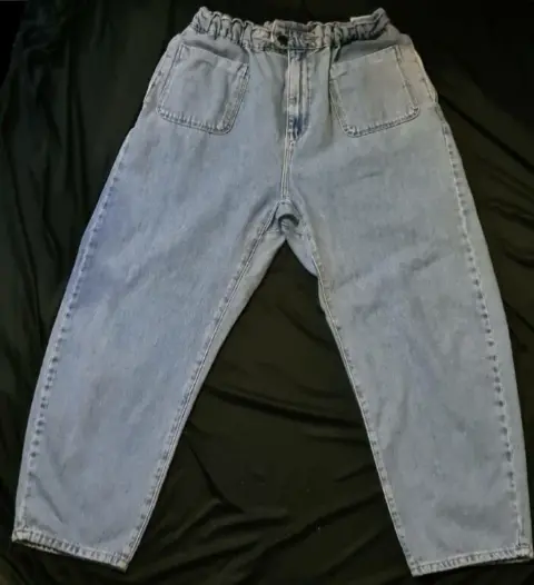 PANTALÓN DE MEZCLILLA TALLA XL, AMPLIO, MARCA DENIM COLLECTION,RESORTE EN LA CINTURA, BOLSILLOS AL FRENTE PARECIDO ÚLTIMA FOTO, 77 CM DE CINTURA, TIRO ALTO, CADERA 114 CM,LARGO 99 CM, PERFECTAS CONDICIONES SIN DETALLES