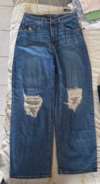 Pantalón mezclilla Corte ancho. Pantalón mezclilla sin strech, corte cintura alta piernaAncha corte recto NUEVO americano talla 12