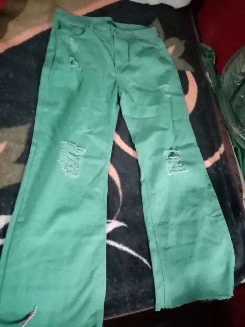 Pantalón de mezclilla color verde, nuevo, talla 11 $ 300