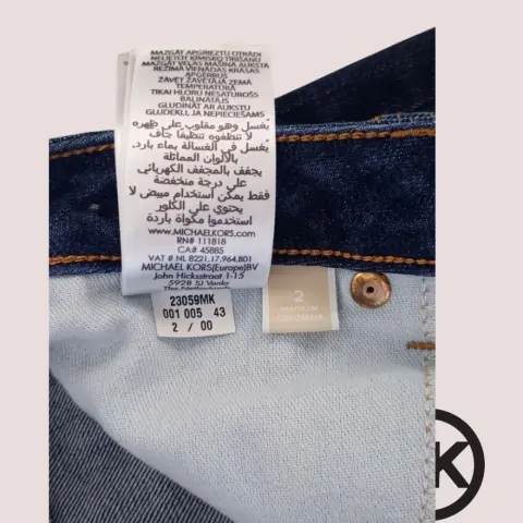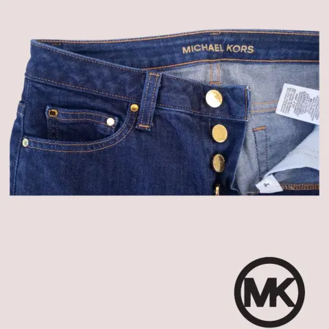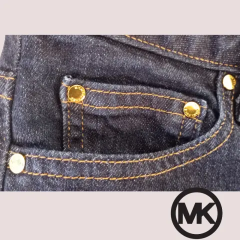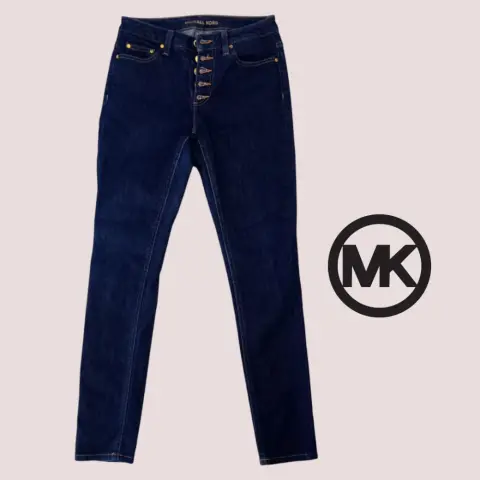Jeans Michael Kors talla 2 queda a una talla 5 posible 7 checar medidas. Botones y remaches dorados con grabado de la marca, pequeños signos de raspones mostrados en las fotos, bolsillos laterales y traseros, trabillas, color azul oscuro. 70cm cintura 80cm cadera 23cm tiro frontal 97cm largo