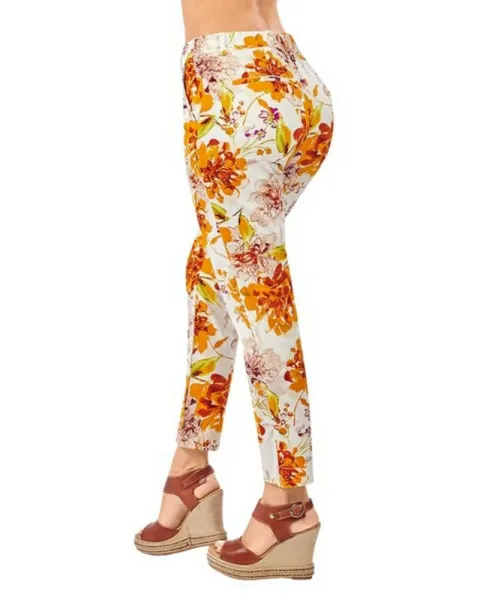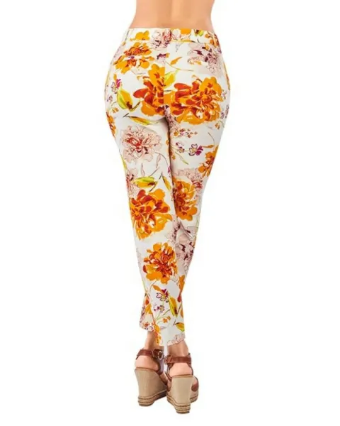 Pantalon para dama en color ivory multicolor, con diseño floral, tela gabardina stretch, cómodo. Material:97% algodón 3% elástano.Le queda mejor a una chica que sea caderona ,aunque se presta ñara ajustarte.La tela es muy fresca y el estampado se ve divinooo.Sin duda un prenda que debes de tener en tu clóset.Cintura:37 cmCadera :45 cmLargo :92 cm