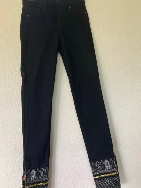 Pantalón negro con detalles. Pantalón negro entubado, con detalles bordados en el bajo de la pierna, con cierres en los tobillos